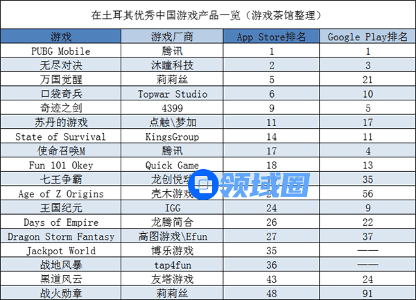 游戏茶馆在土耳其市场榜单前列上,发现许久的不见的Machine Zone旗下游戏《战争游戏:火力时代》《最终幻想15:新帝国》以及《雷霆天下》。