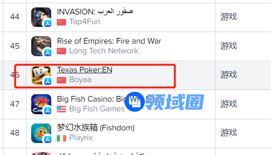 在沙特榜单上,博雅游戏的《德州扑克》令人意外地出现在Top 50。目前游戏还排名约旦、泰国畅销榜Top 50。