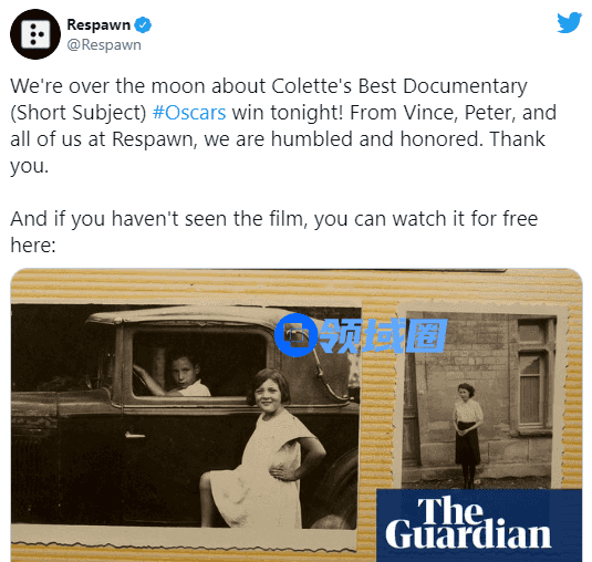 “《柯莱特》获得奥斯卡最佳纪录短片奖让我们欣喜若狂。”重生娱乐在推特上表示,“工作室上上下下所有人都感到非常荣幸。”