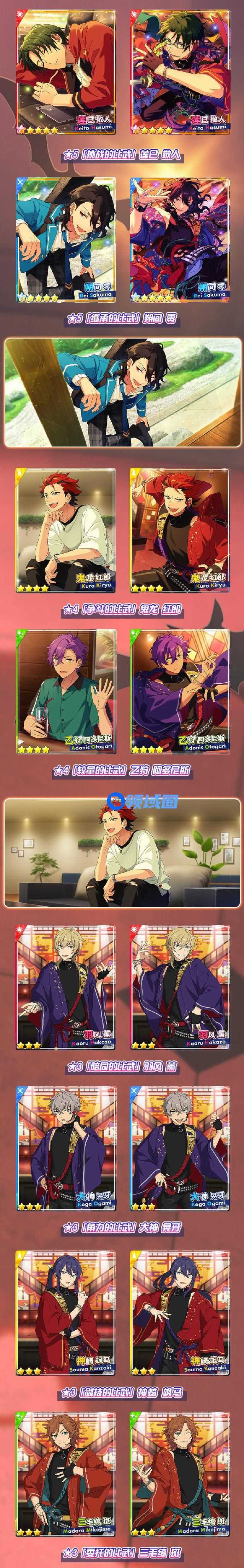 全新演唱会活动「温故知新/继承的御前比武」已经正式开启,并将于3月21日22:00结束。本期活动卡为:5【挑战的比武】莲巳敬人、5【继承的比武】朔间零、4【争斗的比武】鬼龙红郎、4【较量的比武】乙狩阿多尼斯、3【陪同的比武】羽风薰、3【角力的比武】大神晃牙、3【剑技的比武】神崎飒马、3【委托的比武】三毛缟斑,九张限定卡牌在活动中已经与大家见面了。