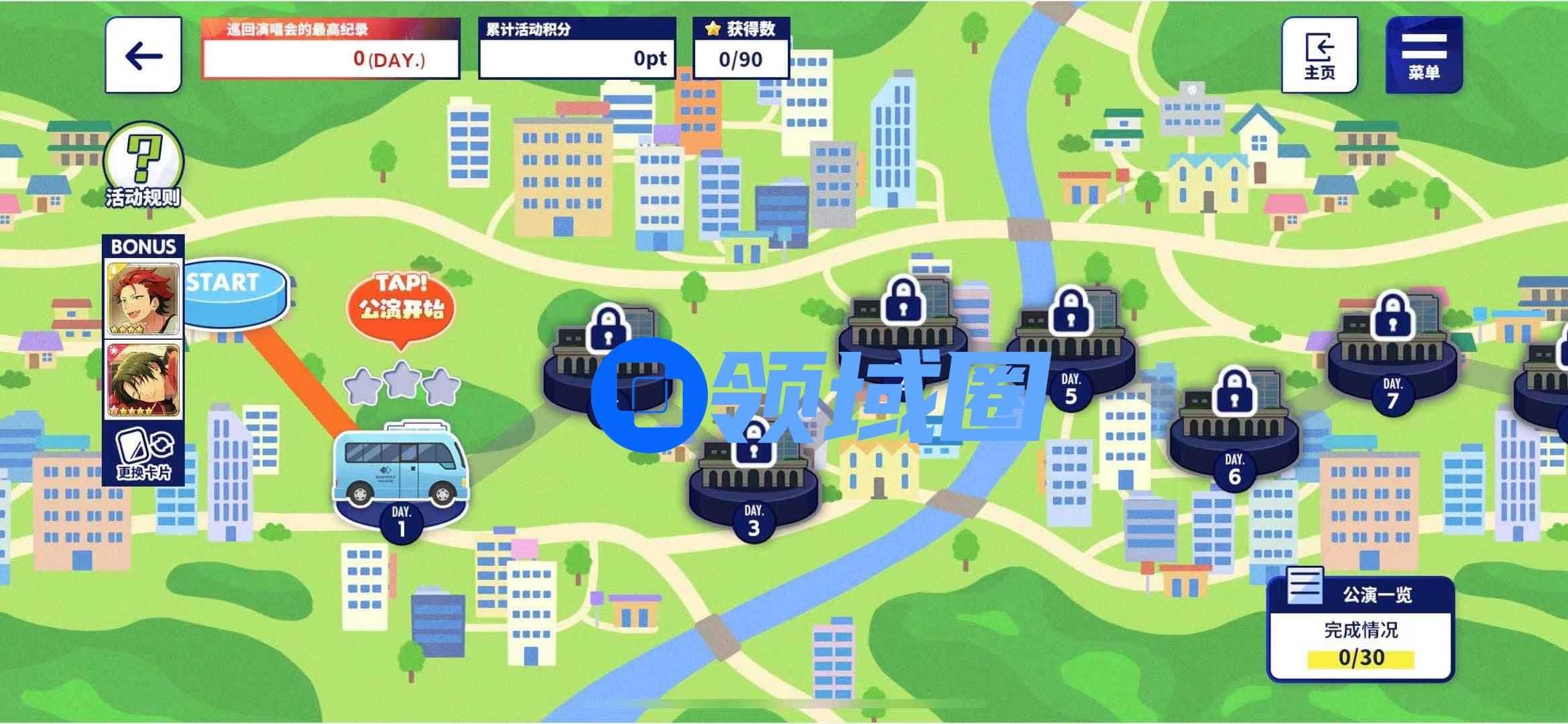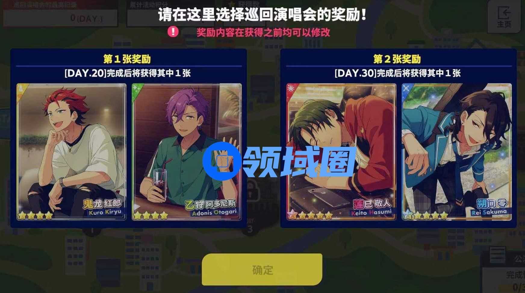 巡演演唱会活动模式中共有30个节点,每一个节点由四首歌曲以及3个任务组成。完成任务即可获得一颗星星。获得30颗和77颗星星,即可解锁20关(自选四星奖励关)以及30关(自选五星奖励关)。成功通关20关和30关,即可获得自选的四星和五星卡片!