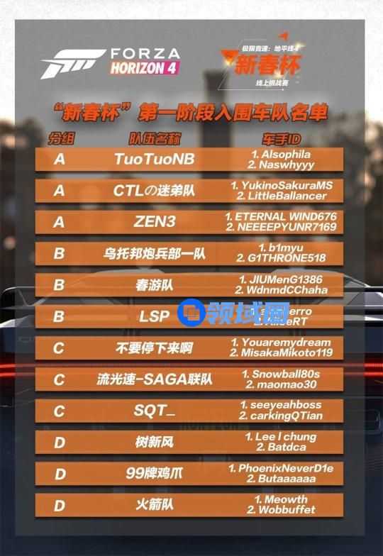 在无数车迷等待新春杯第一阶段小组赛开启的同时,也别忘了,新春杯第二阶段也已经开启报名阶段。在1月20日~1月24日,车队队长可以前往官网报名页面,填写车队成员信息,并邀请所有参赛选手加入选手QQ群。在1月29日之前,参赛战队将通过圈速挑战,为车队积累积分。在2月5日,获得足够积分的12支战队将通过小组赛,争夺2月19日决赛的参赛名额。