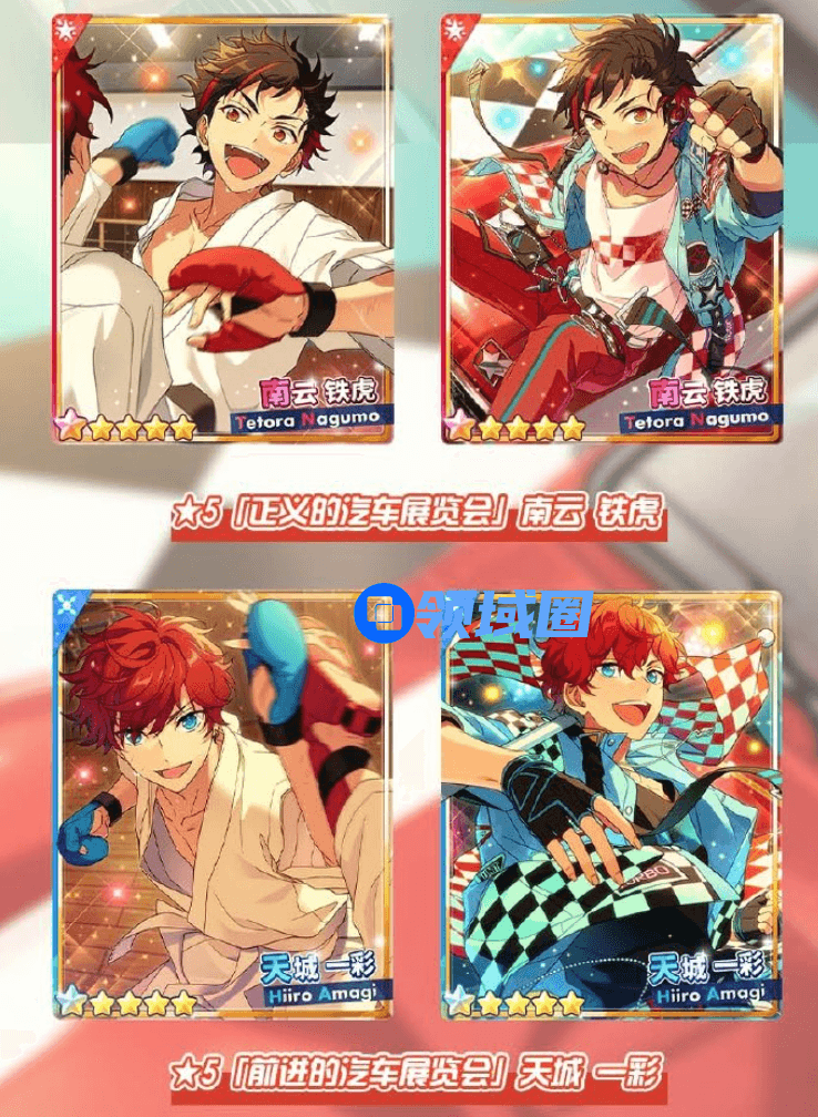 1月2日12:00-1月10日22:00「心灵交错/汽车展览会」演唱会活动正式开启!5【正义的汽车展览会】南云铁虎、5【前进的汽车展览会】天城一彩、4【奉献的汽车展览会】仙石忍、4【幽微的汽车展览会】礼濑真宵、3【守望的汽车展览会】守泽千秋、3【心意与汽车展览会】深海奏汰、3【主动的汽车展览会】高峯翠、3【气势的汽车展览会】白鸟蓝良、3【祈愿与汽车展览会】风早巽。九张活动卡牌将在活动中与大家见面。
