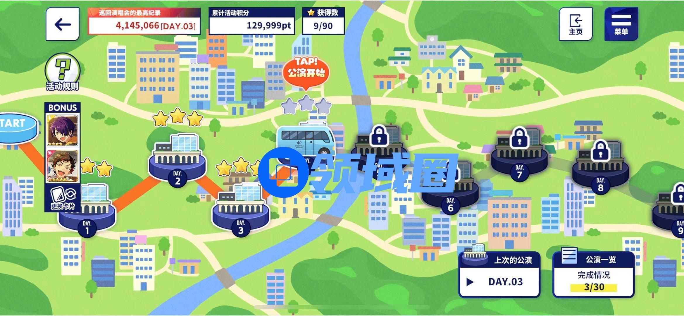 请各位制作人们注意,在巡演演唱会活动中,每一关的四首歌曲消耗的BP值为3BP。