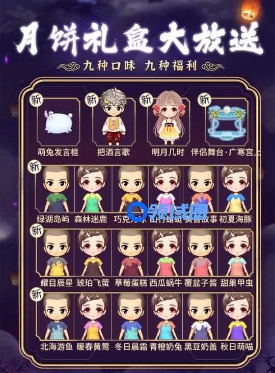 除此之外,每种月饼礼盒为了答谢您的厚爱,都为您准备了特别的礼物!只要您每购买任一口味的月饼礼盒10份,即可获得对应主题的服装奖励!