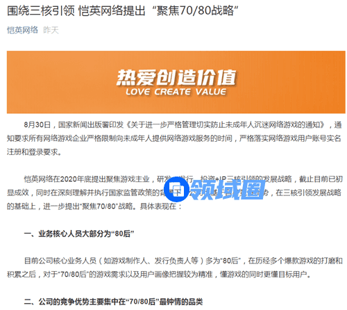 现在这个阶段,各大游戏厂商巴不得立马断掉自身与未成人的财务联系。更有恺英这样以传奇类游戏见长的厂商,不仅关闭了未成人注册,还喊出了“聚焦70/80后”的战略。恺英披露,自营平台未成年人注册用户占比仅为0.07%。