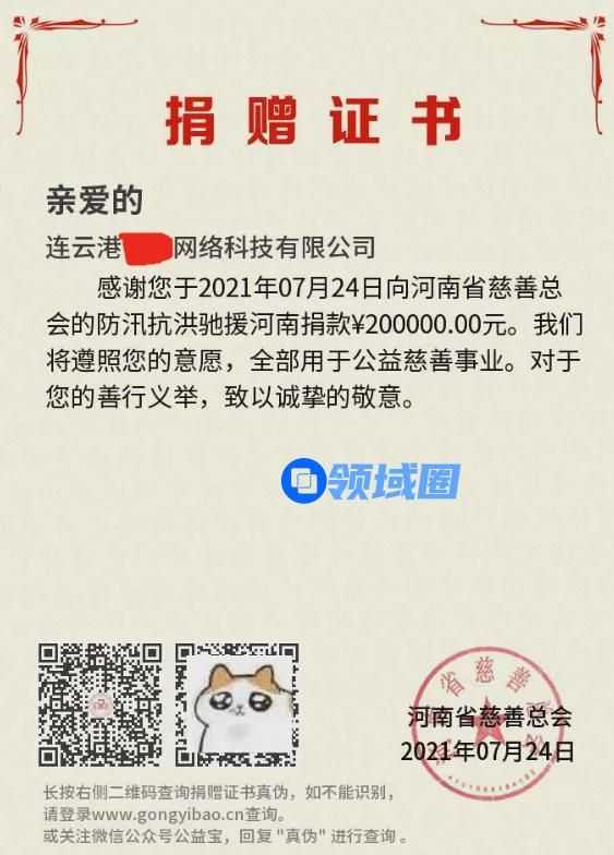 在他们自己的论坛上面,还有代理商分享自己的投广告致富故事,甚至晒出了一张河南抗洪捐款20万的捐款证书(游戏新知验证过了,是真的)。