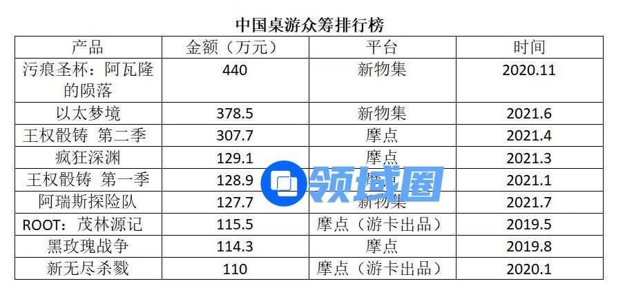 目前中国桌游众筹领域金额最多的9款桌游产品。从表上可以看出,在桌游众筹领域,摩点和新物集是现在国内实力最强的。