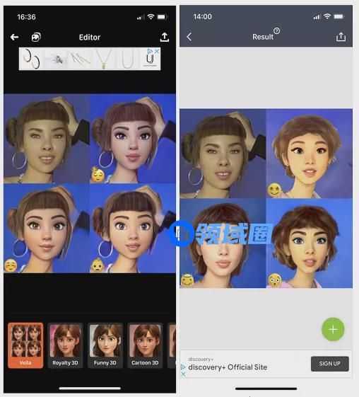 「Voila AI Artist」与「ToonMe」同款特效效果