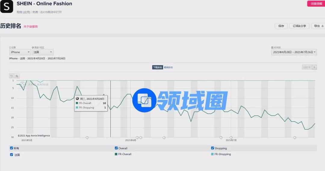 来源:App Annie「SHEIN」iOS 版本在法国的成绩