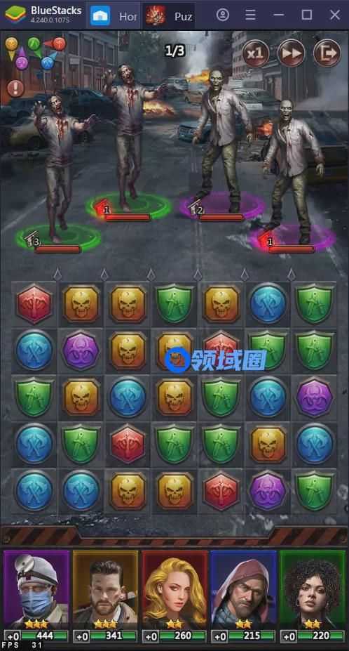 根据笔者此前的测试以及广告素材来看,「Puzzle&survival」玩法的核心是“通过消除玩法进行战斗”。每局战斗会有 1-3 个怪物,玩家操作 5 个英雄进攻,但是进攻的方式不是操纵人物的动作,而是通过三消的方式让英雄发出技能从而对敌人造成伤害。除了通过三消与敌人对战的玩法以外,「Puzzles&Survival」中还加入了建造、收集资源等 SLG 游戏常见的元素。