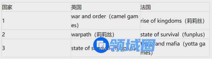 根据 App Annie 突破榜显示,英法两个国家的玩家对于策略游戏中的 4X 行军战争类游戏情有独钟,其中有多款国内出海游戏进入榜单,下面先列一个表格盘点一下。