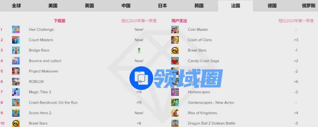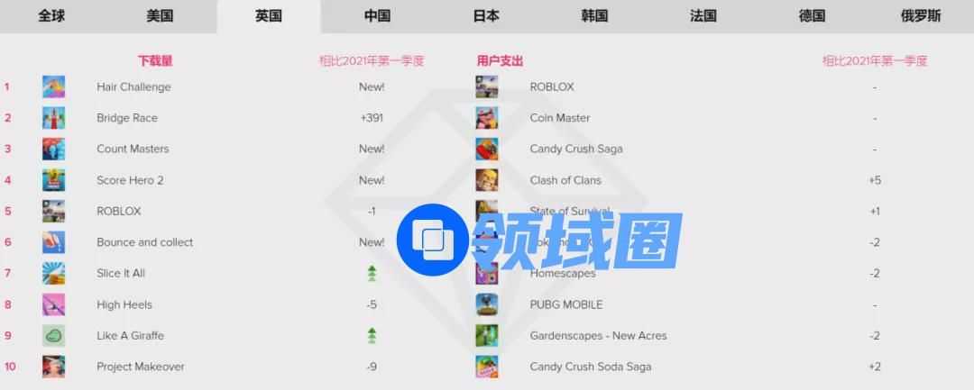 英国(上)和法国(下)Q2 热门游戏榜