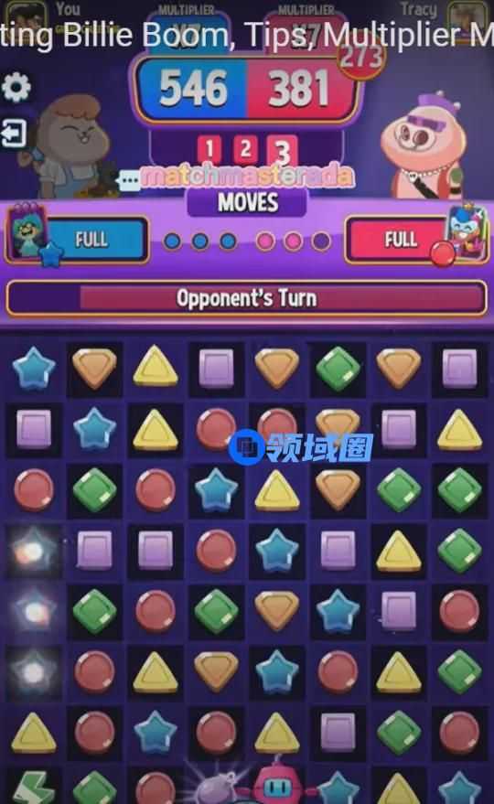 最后,即使各大厂商都在做三消+的尝试,但仍有游戏靠着传统三消的玩法进入突破榜,比如英国突破榜上的「match masters」,这款游戏的做法是将三消与对战、社交相结合。在游戏中玩家会匹配到其它在线的玩家一起对战,在限定的步数以及时间内哪一方通过消除方块获得的分数更多哪一方就获胜。