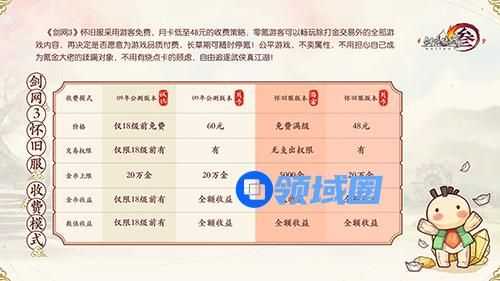 《剑网3》怀旧服的收费模式为月卡制及外观增值服务,保证公平、良心,不卖属性!在游玩模式下,侠士可免费试玩至70级,畅玩除金币交易外的全部游戏内容,深度体验后再决定是否愿意为游戏品质付费月卡,自由追逐武侠真江湖!