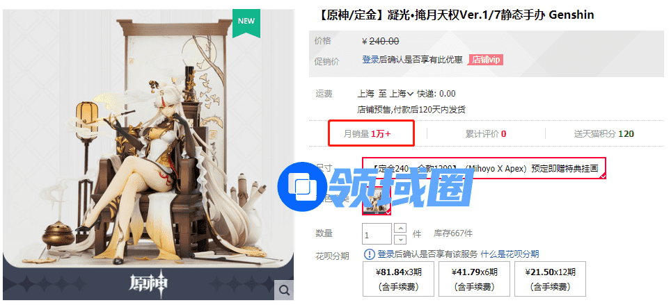从价格来看,这个不菲的手办很难说的上亲民,但在《原神》天猫官方旗舰店上,手办在短短的的三天时间里就获得了超过6000名玩家预约,而截至目前,商品的总预约量已经达到了1万+,总销量保守能有1300万。在reddit上,手办同样引起了外国玩家的关注。