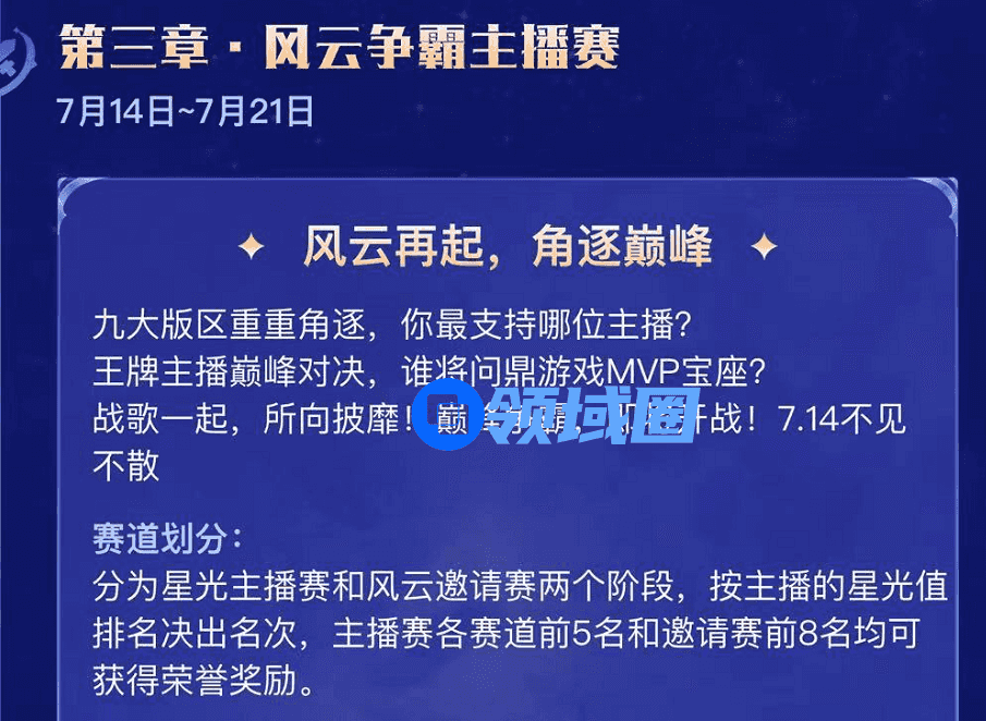 其中,竞技的重头戏,还得数风云争霸赛!风云争霸赛分为两个部分,第一部分是星光主播赛:活动中,各类主播将按照自己开播的游戏内容,进行区域划分,开展逐一竞技!包含和平精英、王者荣耀、英雄联盟,以及其他的FPS、棋牌、主机、手游、网游等等,几乎覆盖了所有的游戏板块!