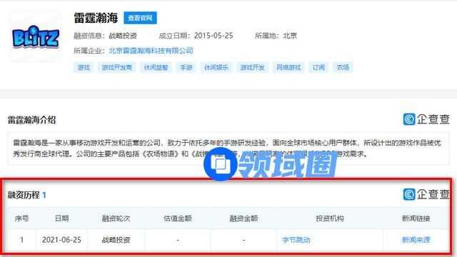 继收购沐瞳、入股悠米互娱后,字节跳动再度加码中重度游戏。
