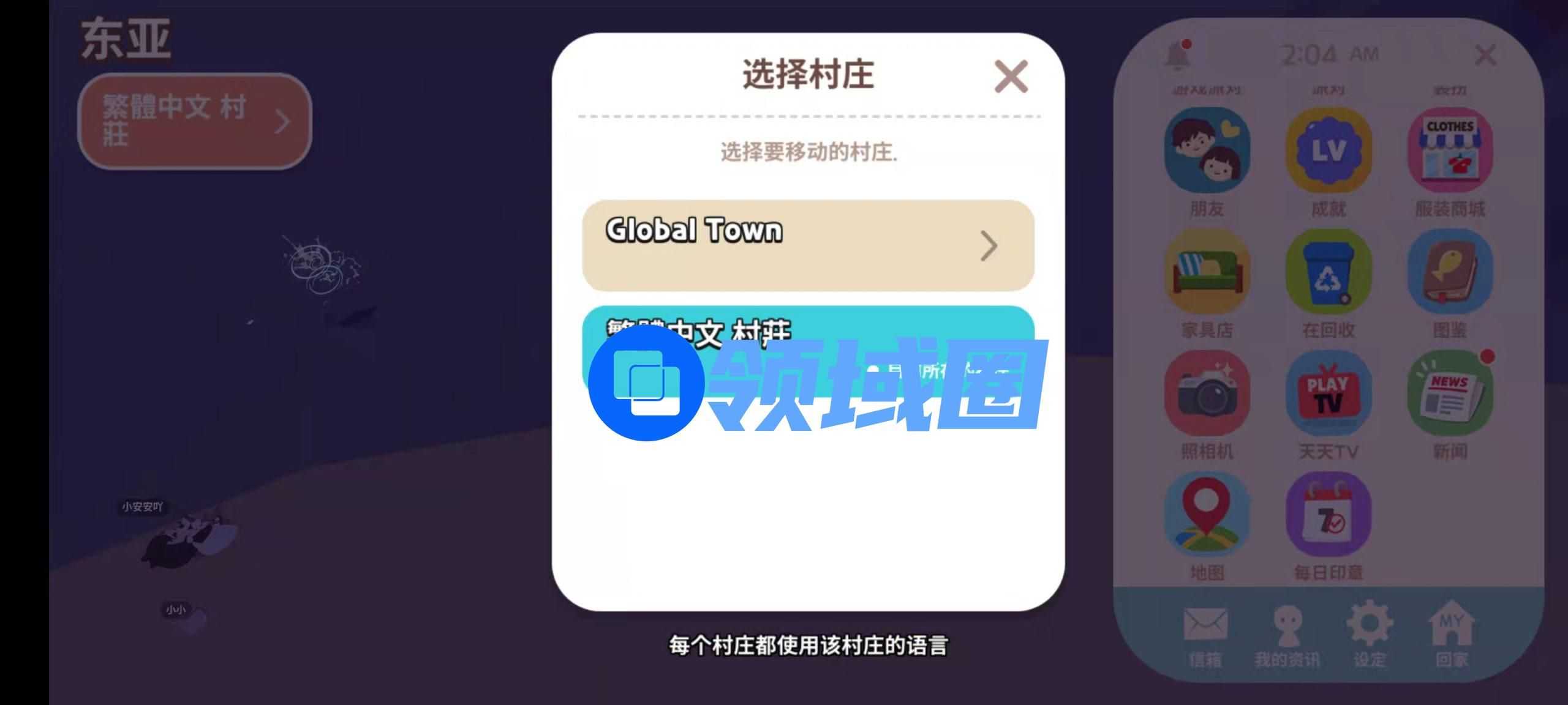 进入游戏伊始,系统就会鼓励玩家切换到适合自己的小镇(Town),这些小镇并非按照国家而是按照语种进行划分的。由于这款游戏尚未登录国内市场,因而中国区玩家默认会被分配至Global Town,此外也可切换至繁体中文小镇。不同的小镇除语种差异外并无其他区别,官方希望通过这种方式增强玩家在游戏中的参与感,更多地与语言背景相同的玩家交流互动。