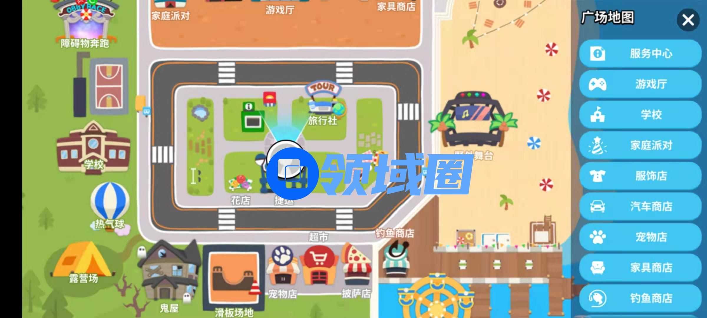 确认好自己的初始形象和初始小镇,一座真正的游乐园也就正式展现在玩家眼前了。每座小镇都拥有上下两层,上层是社交活动区,拥有包括超市、百货店、学校、游戏厅在内的完备配置,也是玩家日常最主要的活动空间,在这里你可以打工赚钱补贴家用,也可以在各种多人小游戏中寻求社交娱乐的乐趣。此外,屏幕上方随时可能飘过来自陌生人的派对邀请函,如果你欣然接受,就能在家庭派对区一展自己炫酷的舞技。
