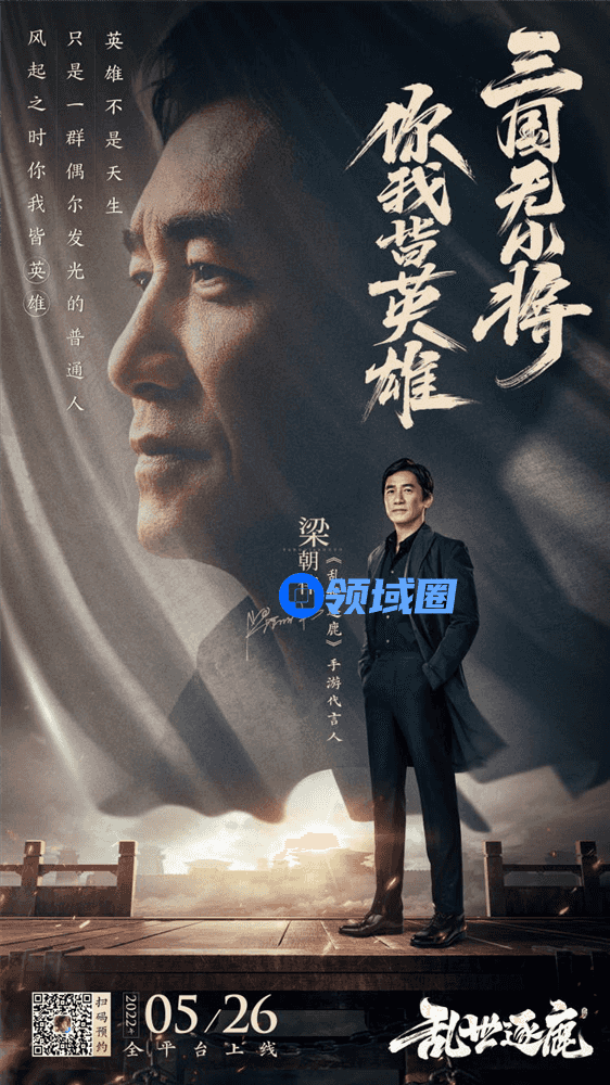 影帝梁朝伟先生与《乱世逐鹿》合作中,官方也邀请了金像奖导演翁子光执镜,张叔平为梁朝伟服装指导,一起给观众和玩家带来全新的电影感三国大片。这一次梁朝伟先生不做名将,以新的视角穿越三国世界,给观众展现东汉末年的迷人魅力,找寻其中的英雄小将。预告片已同步上线,在“三国无小将,你我皆英雄”世界中,影帝梁朝伟将给我们带来怎样的精彩故事呢?敬请期待5月26日,完整版三国大片《英雄?》《小将!》,即将和游戏上线一起同步首发。