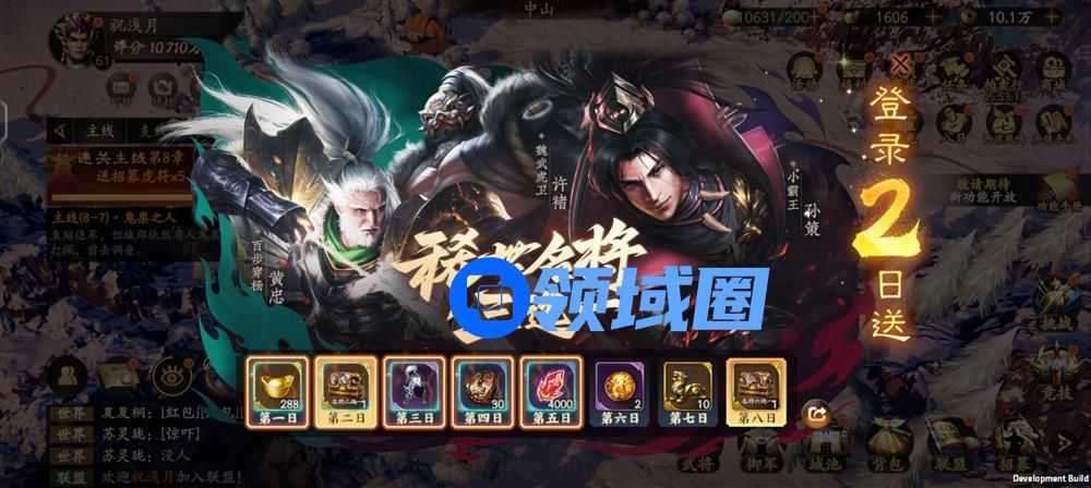 兵马未动,粮草先行,《乱世逐鹿》手游为玩家准备了海量不删档福利活动。每日登录游戏,名将任君挑选,第二天名将3选1,第八天名将6选1。完成每日签到,还可获得大量游戏元宝等丰厚奖励。完成对应的成长任务,直送5星名将马云禄。玩家在体验主线任务及玩法的过程中,还可解锁招募虎符、大量元宝等福利。海量福利活动,尽在5月26日《乱世逐鹿》手游不删档上线后同步开启!