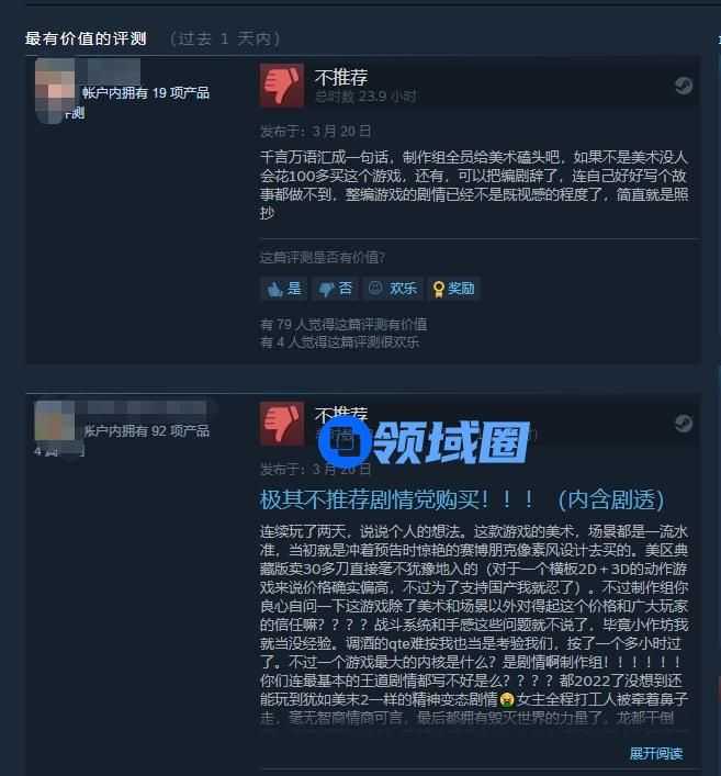 不过,在正式发售之后,《纪元:变异》的表现似乎并不怎么尽如人意。从3月17日发售之后,开局92%的特别好评还算不错,随后口碑急转直下,目前1218条评论中,只有69%的好评率也让这款游戏的口碑变成了褒贬不一。从差评来看,玩家对于《纪元:变异》的不满主要集中在剧情和战斗上。甚至有一些玩家表示:“建议全体制作成员给美术组磕个头”,认为一流的画面却败在了玩法和剧情上面。