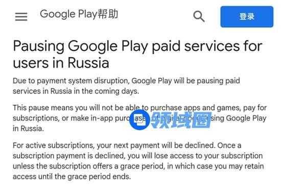 3月10日,Google宣布将关闭Google Play俄罗斯区的支付功能,这意味着未来俄罗斯用户无法再通过Google Play购买App/游戏或进行内购了。而在此前Google已经暂停了在俄罗斯许多服务,如停止了俄罗斯的Google和YouTube广告等。