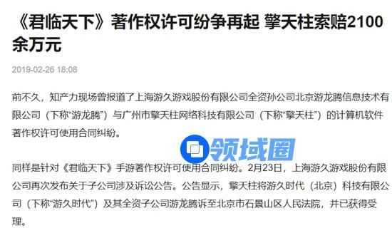 游久游戏此后风波不断,由于欠分成款被支柱产品《君临天下》的开发商告上法庭,并失去了《君临天下》的发行权。手游时代,游久网也大不如前,不能为上市公司贡献更多利润。