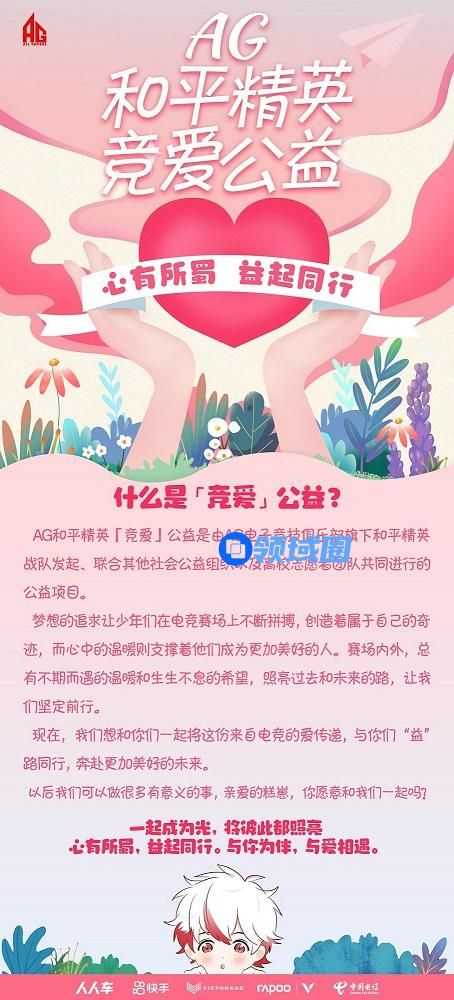 在社会公益方面,成都AG和平精英战队也进行了规划和尝试,打造地域化公益项目——“竞爱”公益,以“心有所蜀,益起同行”为口号,致力于打造一个以成都为中心的电竞公益项目,弘扬电竞人正能量,为成都营造更良好的电竞环境贡献自己的一份力量。