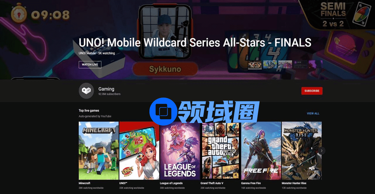 UNO!手游决赛在海外YouTube平台游戏直播榜第二位