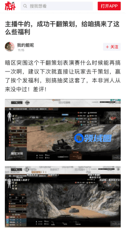 而全程观赛的玩家们,对于主播队成功干翻策划是赞叹不已,纷纷表示干得漂亮,毕竟面对的是每天疯狂亿遍的策划,代入感不要太强,试问谁还没在玩游戏时骂过一句“xx策划”呢!不得不说,暗区官方搞这样一场别开生面的比赛,可谓是用意深远。不但给了玩家一个宣泄对策划愤恨情绪的机会,同时也通过送福利,拉近了官方与玩家之间的关系。