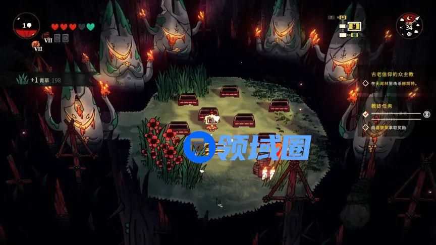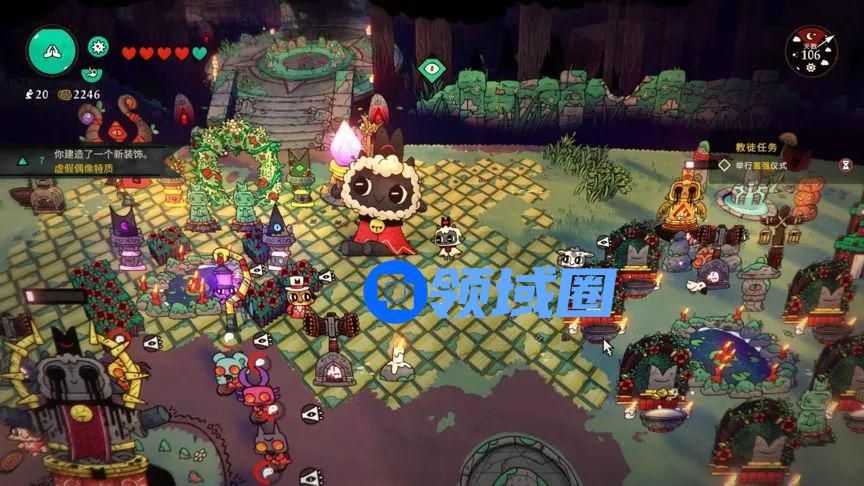 除了美术风格之外,克苏鲁的Cult题材成为《咩咩启示录》又一个便于向广大玩家“传教”的优势之一。游戏的主要剧情,也是围绕最后一只圣羊在被四位古神献祭之时,由圣冠之主所救,建立自己的教派吸纳教徒,大搞基建解锁圣力,最终成功反水的“励志故事”。