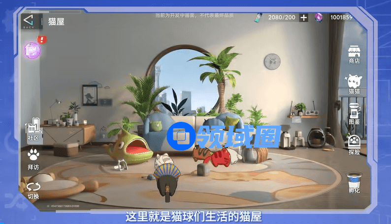 游戏的大厅界面及抽卡动画设计也“猫味”十足。大厅界面设计为猫咖,同时作为办公地点;而抽卡动画则设计为扔球给猫玩耍。游戏自带的猫屋玩法,玩家可搭配不同的猫孵化不同特征和性格的猫咪,实现“云养猫”,满足“仓鼠症”。