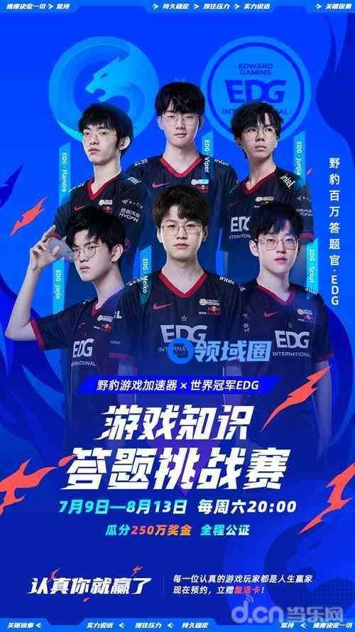 欢迎各位玩家们,参与野豹加速器游戏知识答题活动,7月9日起每周六晚8点答题,一起瓜分250万大奖!EDG和你不见不散!