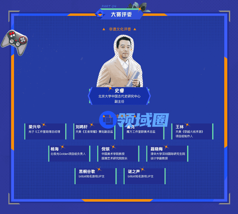 国内顶尖的历史科研机构——北京大学历史学系作为本次大赛的学术支持单位,为赛事提供非遗文化的详细资料和开发指导,为非遗文化在游戏领域的数字化探索提供助力。北京大学中国古代史研究中心副主任史睿老师担任大赛的非遗文化评委,将参与作品评选,并为优质参赛作品的学生团队提供非遗文化的勘误和指导。来自腾讯游戏旗下天美、光子、北极光、魔方等工作室的游戏制作人,以及学业、业界的知名专家学者也将组成专家级“导师团”,帮助参赛团队打磨优化作品。