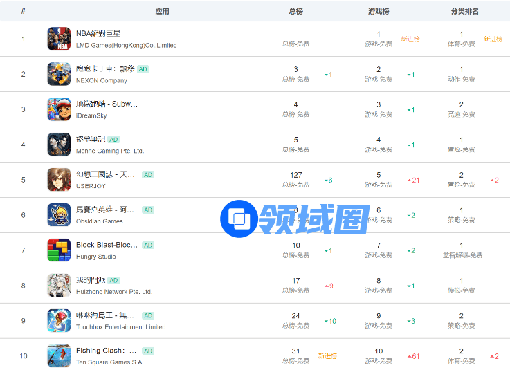 除此之外,更有最近表现惊人的《哒哒特工》、《马赛克英雄》为代表的放置类游戏的兴起,让港澳台地区变的竞争更加激烈 。而就当一众二次元,MMO, MOBA等游戏在手游市场上大杀四方的同时,一款名为《NBA绝对巨星》的体育类游戏在台湾地区的苹果商店榜上有名,这款卡牌策略类游戏在1月17日上线当日即空降港澳台三个地区的游戏免费榜及体育游戏榜榜首;在1月18日拿下台湾总榜、游戏免费榜双榜第一,香港总榜第二;在上线第三天就拿下了港澳台地区双平台双榜第一的好成绩。