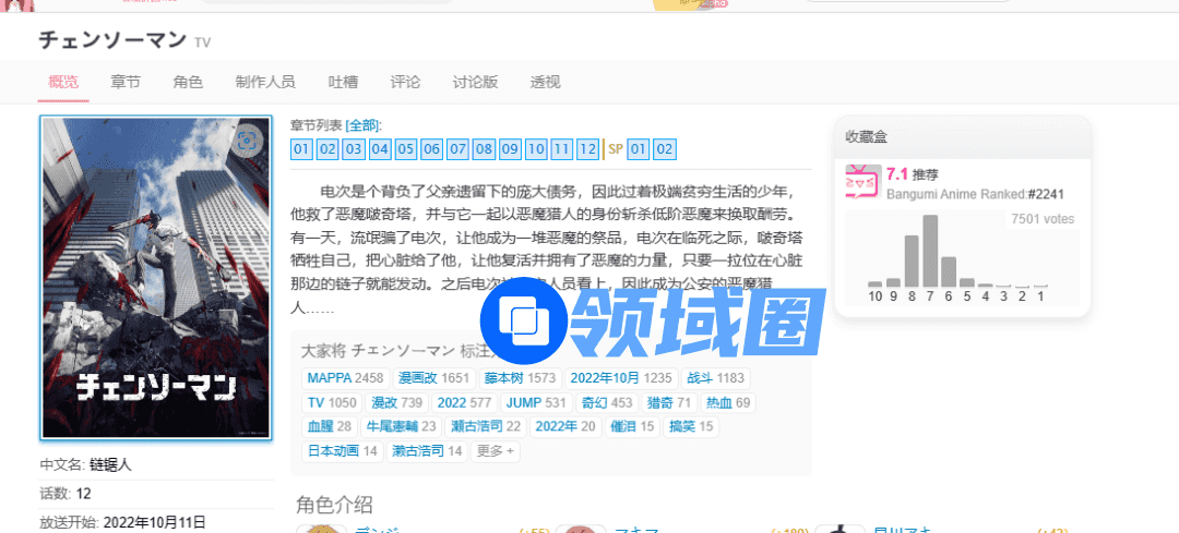 而迟来的《电锯人》动画尝试也并不顺利。在去年10月份播出后,由日本知名动画制作方Mappa操刀的《电锯人》动画第一季其整体质量只能说是中规中矩,被同期的另一部漫改动画《孤独摇滚》在各项数据上爆杀,各大动画平台对《电锯人》的评分普遍不高。