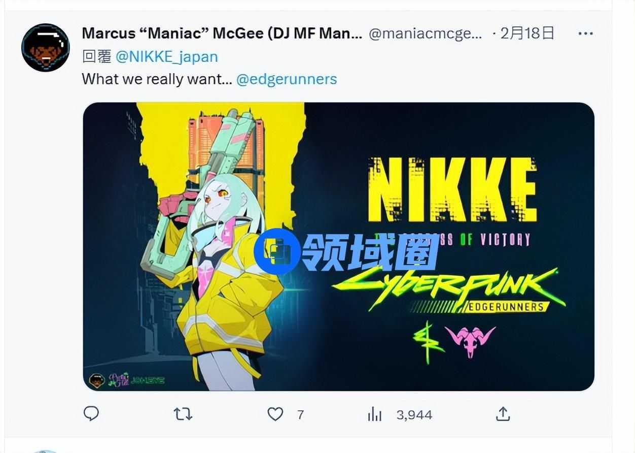 在这篇文章发布的时候,《NIKKE》与《电锯人》联动的相关话题已经在推特热门待了有一段时间,有不少网友聚集在官方的评论区开启“做梦模式”,不少人已经开始为两个IP“定制”接下来的联动对象。