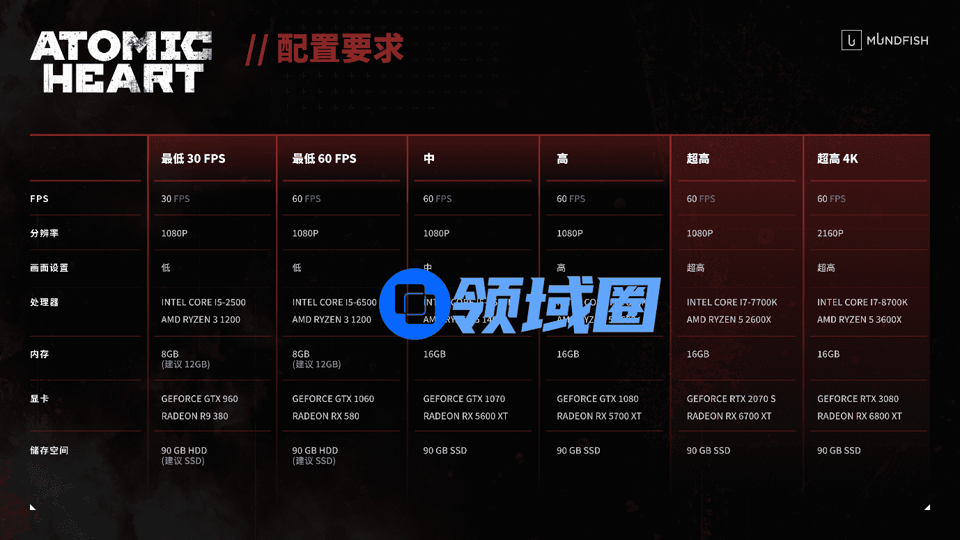 要以最高图形设置(4K 分辨率或 2160P)玩 《原子之心》并保持每秒 60 帧的帧率,玩家需要一台配备 GeForce RTX 3080 或 Radeon RX 6800 XT以及 16 GB 内存 的PC机器。