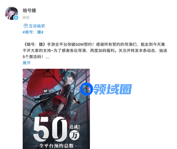 值得一提的是,实机演示结束不久,《暗号:瞳》在其官方社区宣布其全平台预约已突破50W。