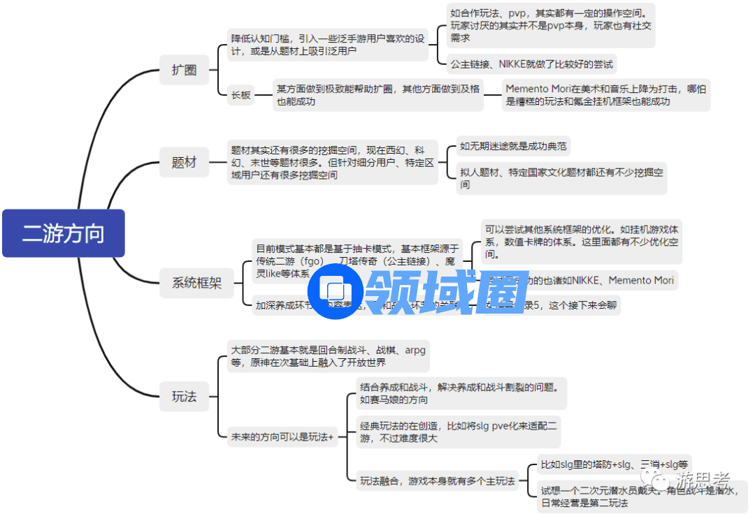 但实际上哪怕顶级二游也存在这些问题。之前和一些朋友聊过,很多二次元项目是从内容出发,系统、玩法、关卡等都会依照文案的设定再去推进,这导致了没法很好的“形式追随功能”;另外还存在一些诸如项目不太重视系统和数值,有些项目数值都不是二次元游戏玩家,还在用其他品类游戏数值思路去做功能等问题。关于这些问题,这次就一笔带过,后面专门会讨论这一块
