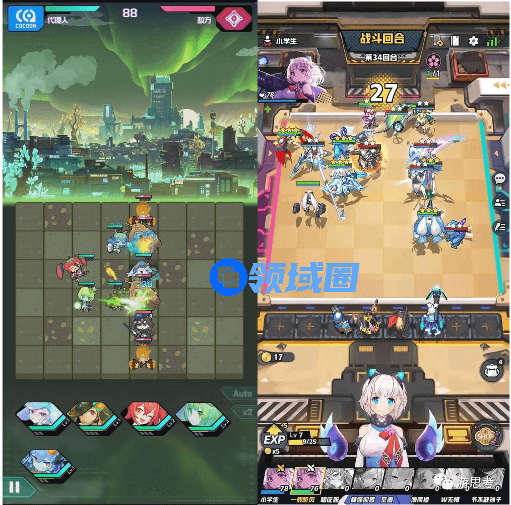 - 玩法看起来似乎很美好。但是主玩法的自走棋战斗本身就没有太多表现上的优势,太多角色导致画面表现角色变得更难。也不知道哪位天才设计的战斗区域是左右而不是上下,这种处理对于战斗展示更加小的可怜。而其他的玩法则都不好玩,行程系统虽然看起来很好但完全没有讲剧情,变成了最烦人的玩法之一。