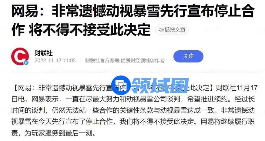 不久后,网易发表声明,称非常遗憾动视暴雪先行宣布,网易将不得不接受此决定。网易表示,过去网易一直在尽最大努力和动视暴雪公司谈判,希望推进需求,但经过长时间的探你谈判后,仍旧无法达成一致,网易将继续履行职责,为游戏玩家服务到最后一刻。