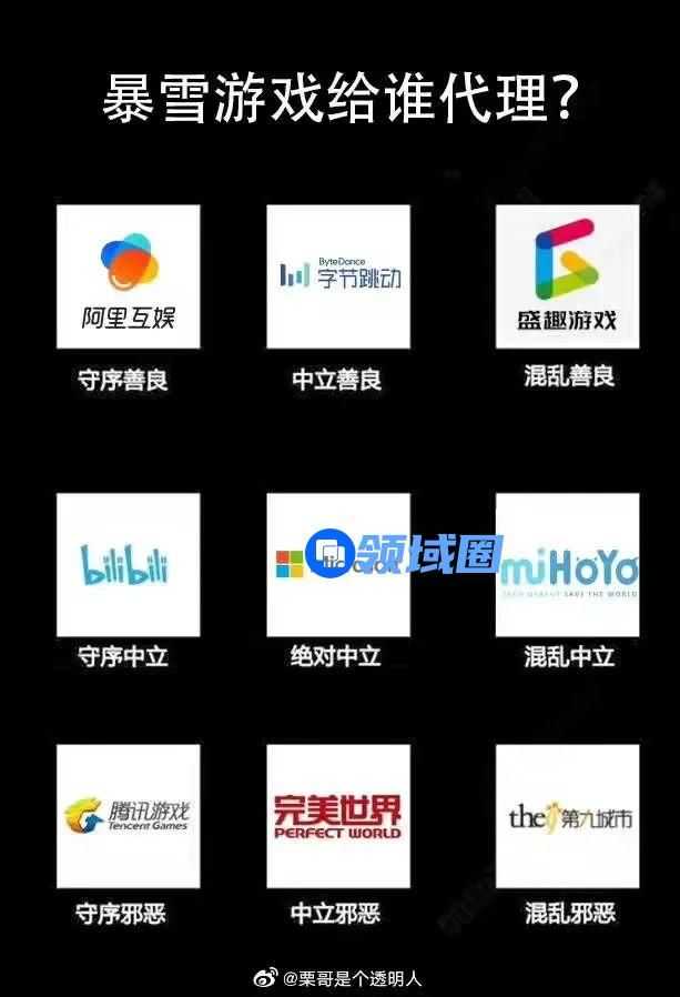 九宫格也少不了,但为什么阿里互娱是守序善良?米哈游又为什么是混乱中立?而我最不能理解的是,九城居然是混乱邪恶的。