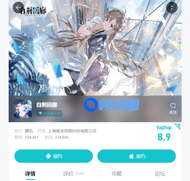 自5月24号《白荆回廊》开始“巡声测试”至今,它在核心二次元手游玩家群体中获得了较好的评价,目前TapTap平台预约量超过33万,评分8.9。