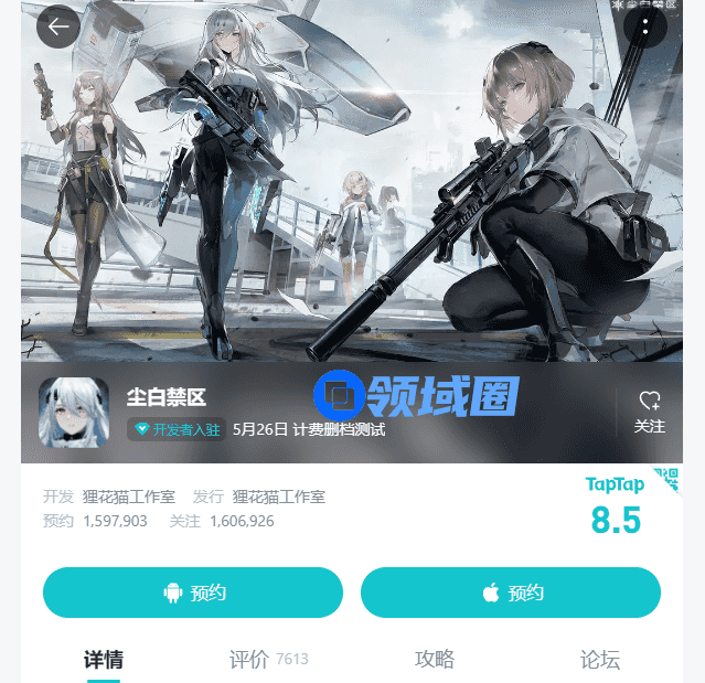 5月26日,由狸花猫工作室开发并发行的二次元美少女射击游戏《尘白禁区》开启了三测。作品目前TapTap平台预约数接近160万,评分8.5。