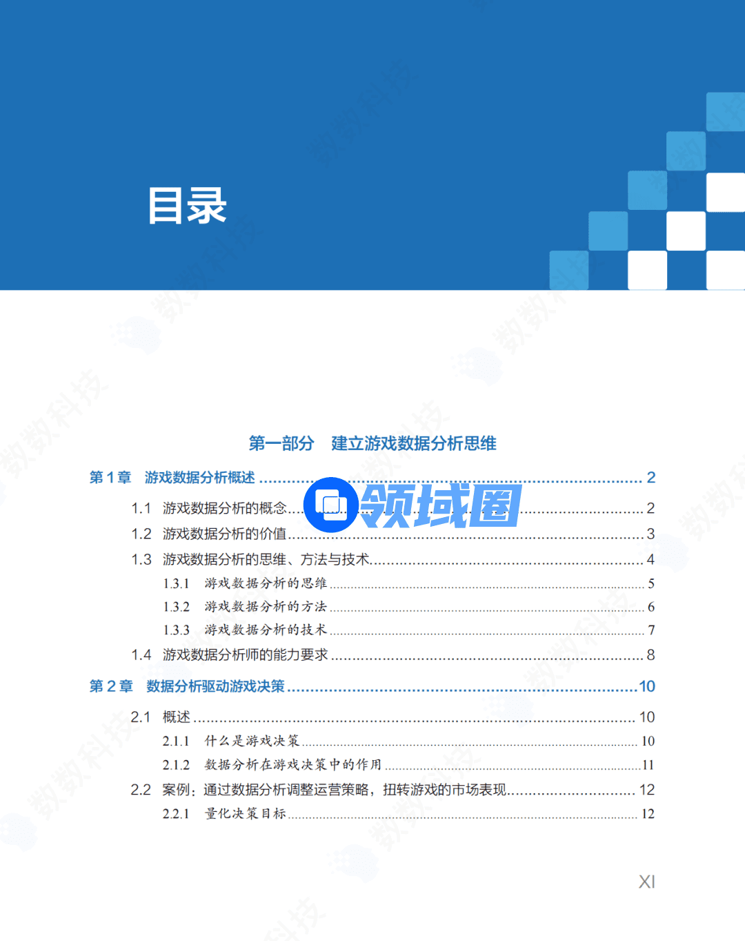 - 第1章 概要介绍游戏数据分析的相关背景知识,包括游戏数据分析的概念、价值、思维、方法和技术,以及游戏数据分析师这一角色的核心能力和职责。