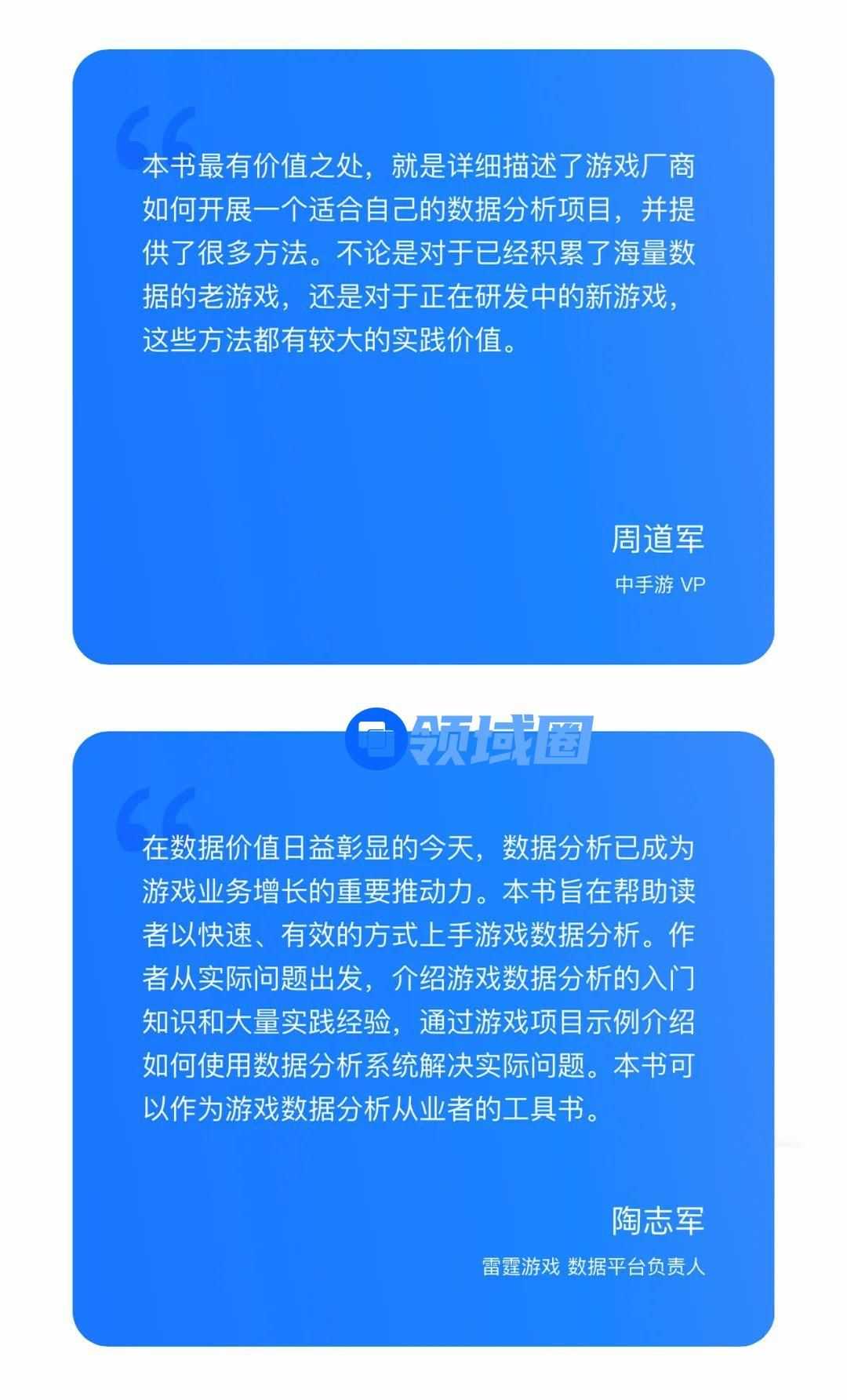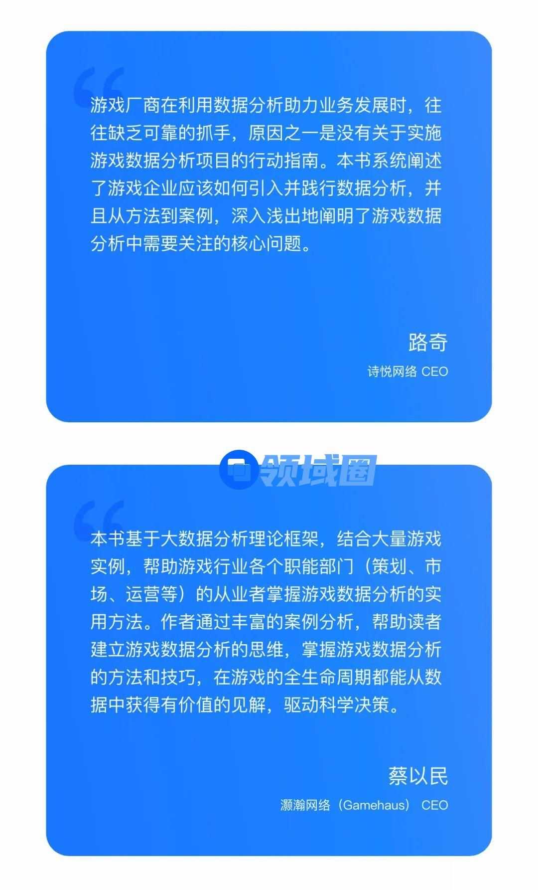不论对于游戏企业高层管理人员、游戏制作人,还是一线的数据分析师、游戏运营及策划人员,亦或是有意愿从事游戏数据分析工作的学生群体,相信这本书都属于开卷有益的推荐读物。