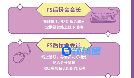 FS后援会会长:负责管理每个地区后援会成员,定期组织线上线下活动